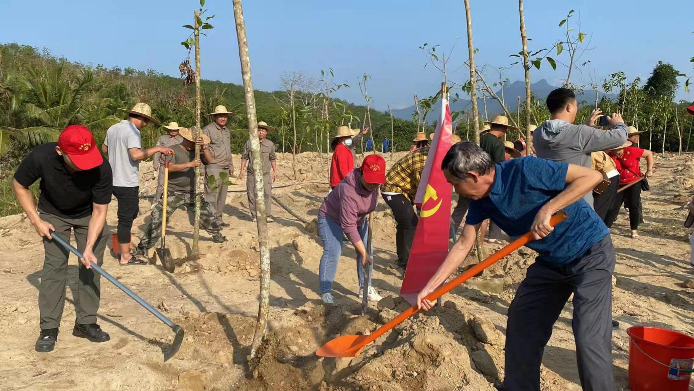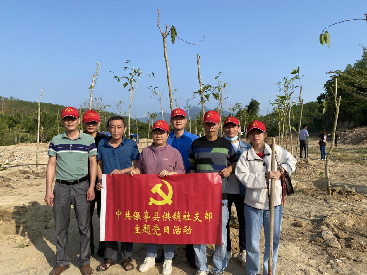 3月11日上午,保亭縣供銷社黨支部組織黨員干部在保城鎮什小村小組開展義務植樹“主題黨日”活動。