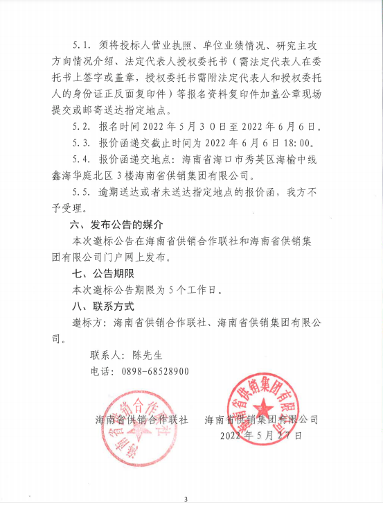 關(guān)于海南供銷環(huán)島農(nóng)產(chǎn)品冷鏈物流體系項(xiàng)目專項(xiàng)規(guī)劃的邀請(qǐng)招標(biāo)函
