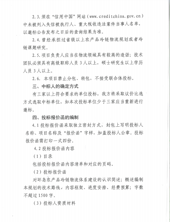 關于海南供銷環島農產品冷鏈物流體系項目專項規劃的邀請招標函