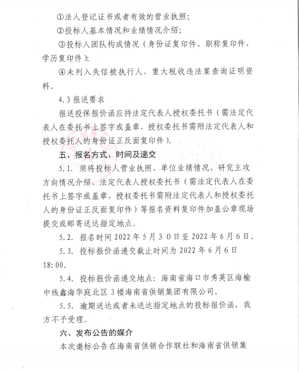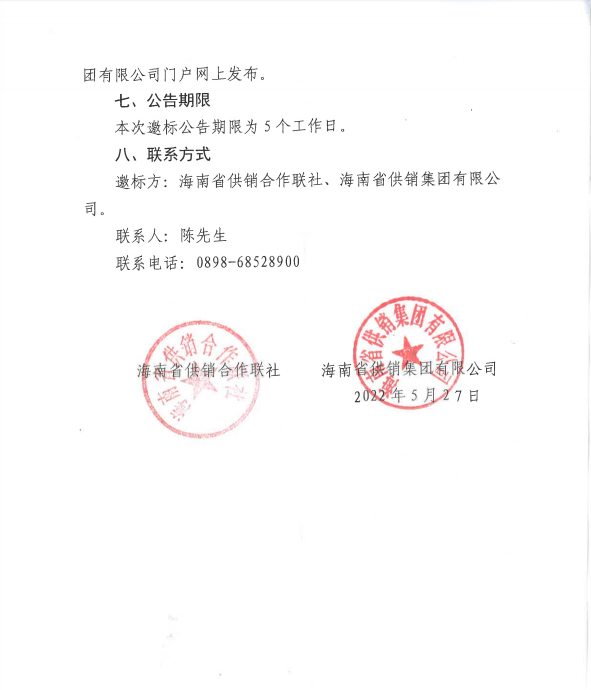 關于海南供銷環島農產品冷鏈物流體系項目專項規劃的邀請招標函公示海南省供銷集團 © 2016 版權所有 All Rights Reserved.