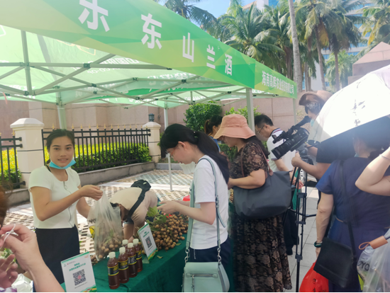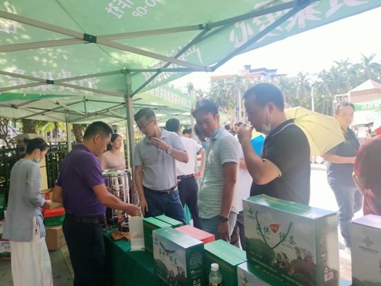 當(dāng)天16時(shí)30分,盡管天氣炎熱,扶貧集市的攤位前仍有很多消費(fèi)者在挑選扶貧產(chǎn)品,澄邁福山咖啡、澄邁橋頭地瓜、樂東山蘭酒、海供(海南省供銷社)紅茶……部分品牌扶貧農(nóng)產(chǎn)品很快賣光了。
