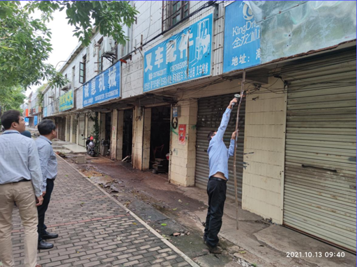 在檢查臨街鋪面臺風防御工作時,要求所有臨街鋪面租戶臺風期間禁止營業,加固所有門窗等存在安全隱患區域,并安排人員清除存在安全隱患物品。