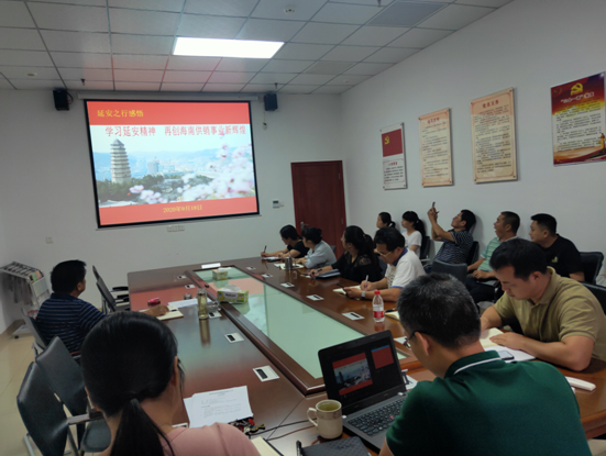 2020年9月18日下午省供銷集團辦公室主任黃家木就參加省社機關黨委組織“學習延安精神,再創海南供銷新輝煌”專題培訓班,將學習延安精神的心得體會與省供銷集團黨支部全體黨員和全體員工一起分享,解讀延安精神形成過程、延安精神有關內容及現場圖片解讀,我們黨和老一輩無產階級革命家在延安艱苦的歲月,帶領著全國人民頑強拼搏,艱苦奮斗,最后取得抗日戰爭和解放戰爭的勝利,讓大家對延安精神有所了解。最后省供銷集團總經理李紅衛做出精彩點評,中國要實現中國夢離不開中國共產黨領導,作為黨員干部,要繼續弘揚延安精神,樹立“四個意識”,堅定“四個自信”,做到“兩個維護”。