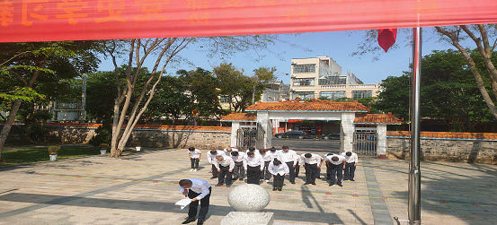 在革命烈士陵園,供銷社系統全體黨員干部整齊列隊肅立,齊聲奏唱《中華人民共和國國歌》,并向革命烈士鮮上花圈。隨后,黨組書記、主任符文雄對革命先驅的豐功偉績進行了重溫講解,共同追憶革命英雄的光輝歷程,大家默哀致敬。活動結束后,大家紛紛表示深感今天的幸福生活來之不易,今后將繼續弘揚英烈精神,銘記歷史重任,堅定理想信念,為加快建設海南自由貿易港和綠色生態富足共享新屯昌而發揮供銷的力量。
