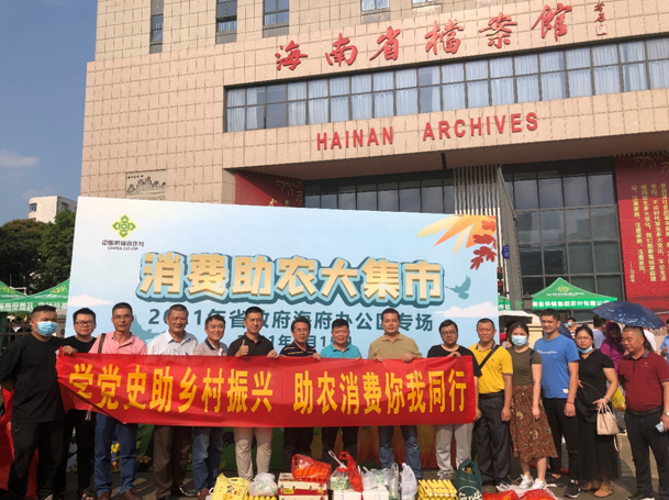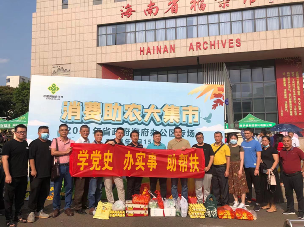 2021年4月15日省供銷集團黨支部開展黨員“學黨史,辦實事,助幫扶”主題黨日活動,黨支部書記李紅衛帶領黨員干部職工16人參加省供銷社聯合省扶貧辦、南海網、海南愛心扶貧網在省政府海府辦公區(省檔案館門前)舉辦“消費助農大集市”專場活動現場采購,現場黨員干部職工購買芒果、甜瓜、茶葉、豬肉、雞蛋、粽子、食用油等農產品1300多元。