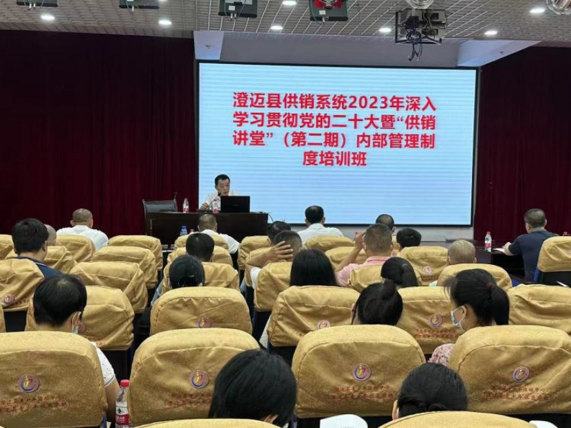 為深入學(xué)習(xí)貫徹黨的二十大精神,推進(jìn)供銷系統(tǒng)管理規(guī)范化、科學(xué)化建設(shè),切實(shí)提高全社系統(tǒng)干部職工履職能力,4月21日,澄邁縣供銷合作聯(lián)社在縣青少年文化中心舉辦了為期一天的澄邁縣供銷系統(tǒng) 2023 年深入學(xué)習(xí)貫徹黨的二十大精神暨“供銷講堂”(第二期)內(nèi)部管理制度培訓(xùn)班,對《澄邁縣供銷合作聯(lián)社制度文件匯編》進(jìn)行講解學(xué)習(xí)。